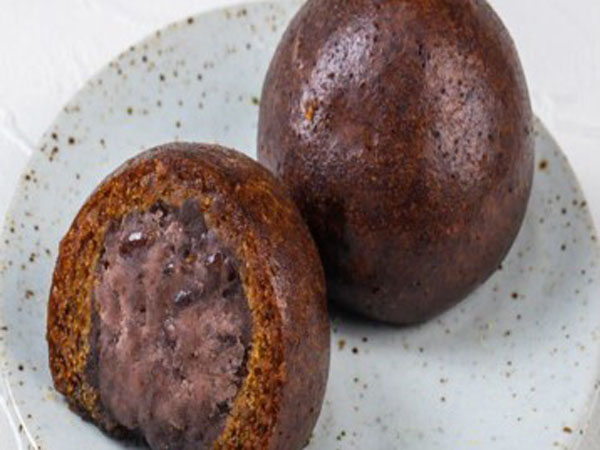 たっぷり粒あんを小麦粉の薄い皮で包み、鉄板の上で四角く焼き上げました。
